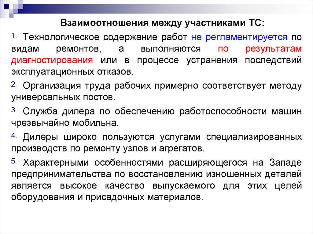 Взаимоотношения между участниками ТС:1. Технологическое содержание работ не регламентируется по