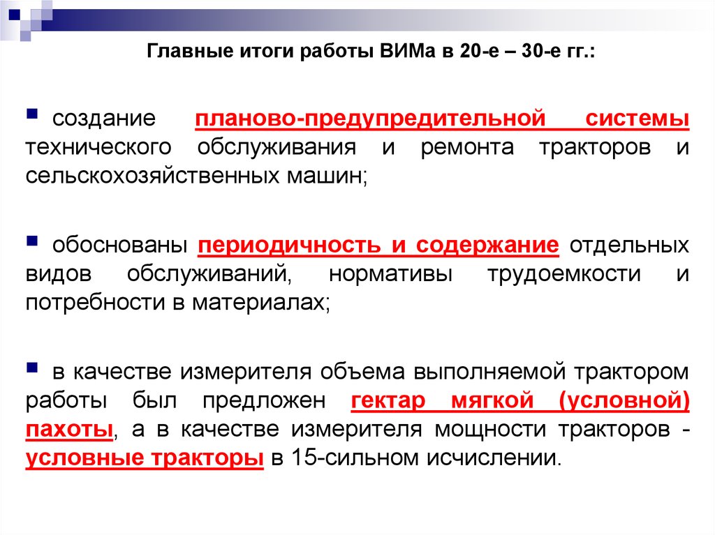 Главные итоги работы ВИМа в 20-е – 30-е гг.:создание