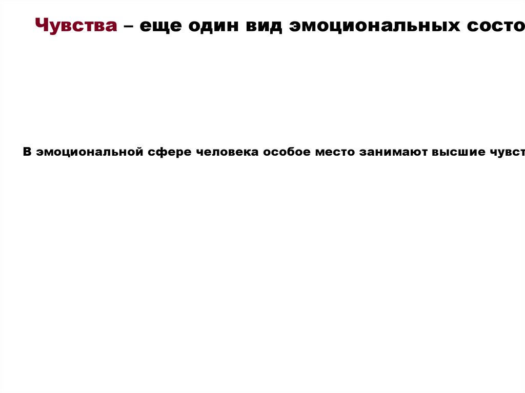 Чувства – еще один вид эмоциональных состояВ эмоциональной сфере человека особое место занимают высшие чувст