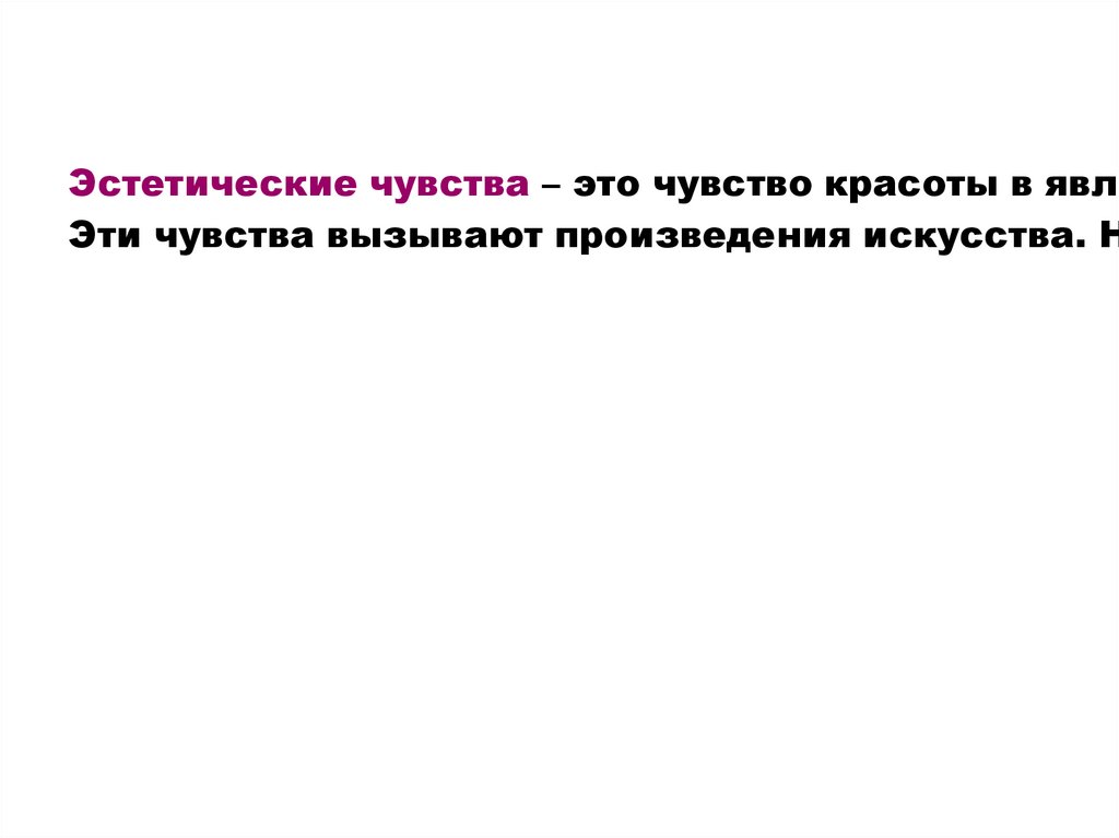 Эстетические чувства – это чувство красоты в явлеЭти чувства вызывают произведения искусства. Н