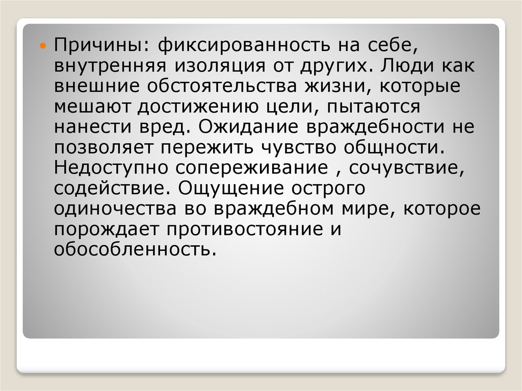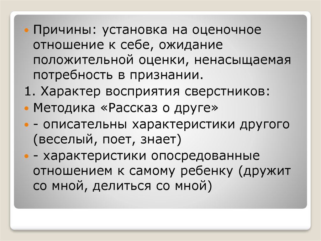 Причины: установка на оценочноеотношение к себе, ожидание