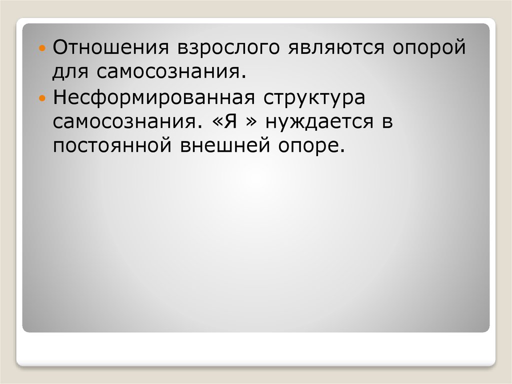 Отношения взрослого являются опоройдля самосознания.