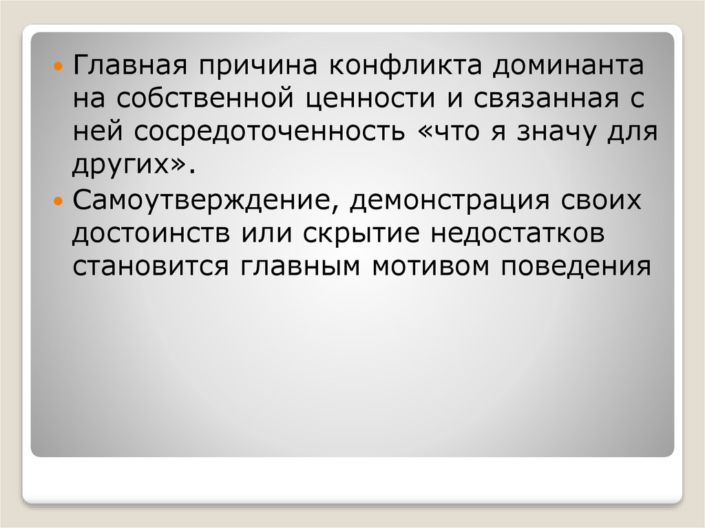 Главная причина конфликта доминантана собственной ценности и связанная с