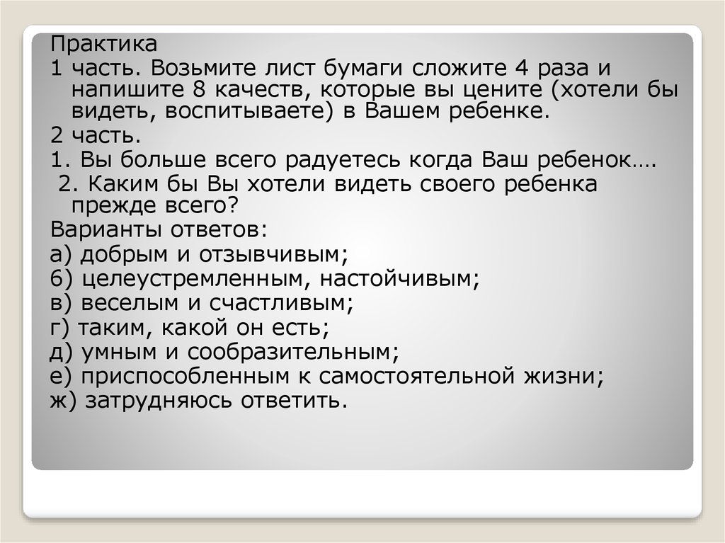 Практика1 часть. Возьмите лист бумаги сложите 4 раза и