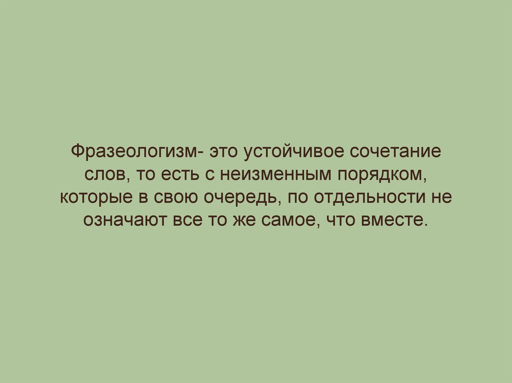 Фразеологизм- это устойчивое сочетаниеслов, то есть с неизменным порядком,