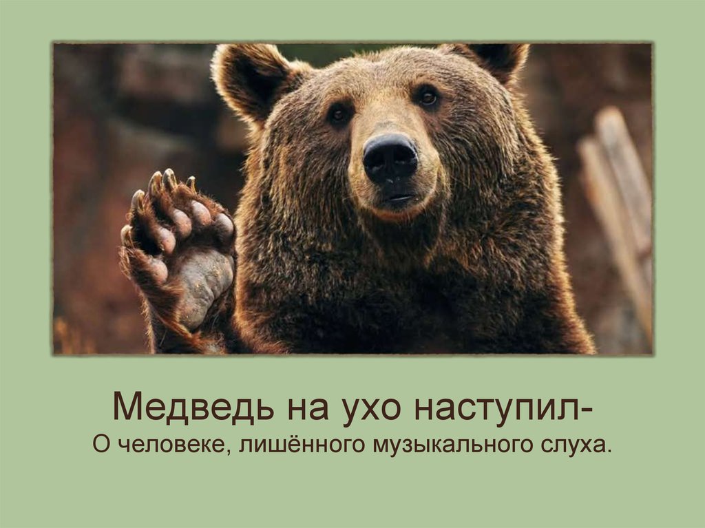Медведь на ухо наступилО человеке, лишённого музыкального слуха.9.