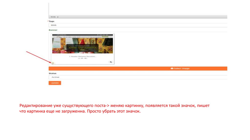 Редактирование уже сущуствующего поста-> меняю картинку, появляется такой значок, пишетчто картинка еще не загруженна. Просто убрать этот значок.