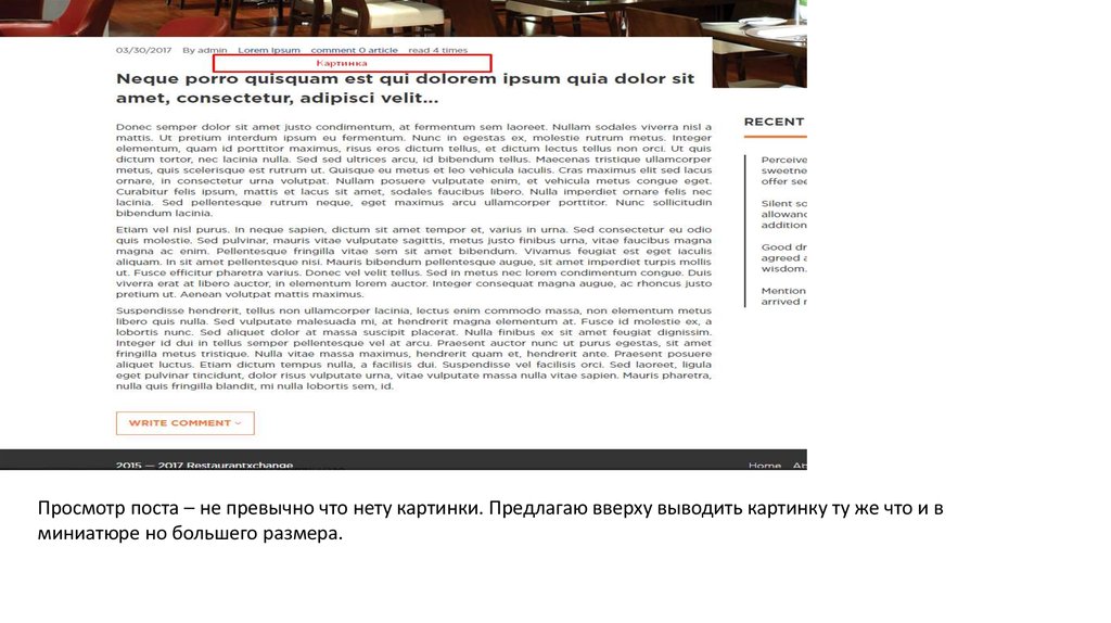 Просмотр поста – не превычно что нету картинки. Предлагаю вверху выводить картинку ту же что и вминиатюре но большего размера.