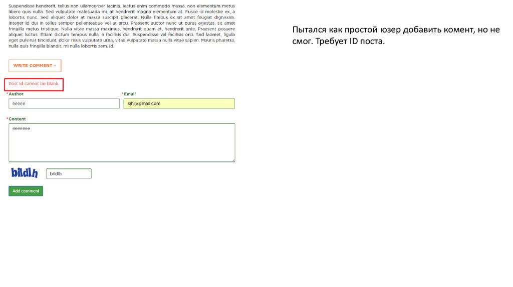 Пытался как простой юзер добавить комент, но несмог. Требует ID поста.