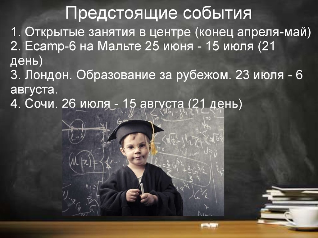 Предстоящие события1. Открытые занятия в центре (конец апреля-май)