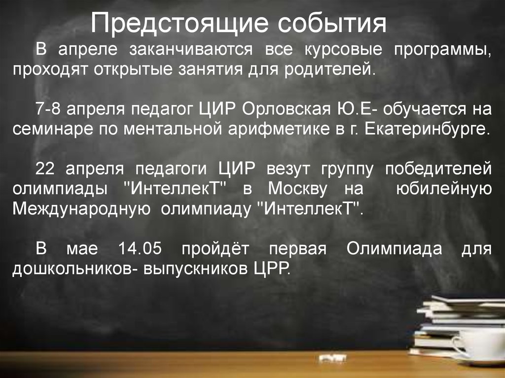 Предстоящие событияВ апреле заканчиваются все курсовые программы,