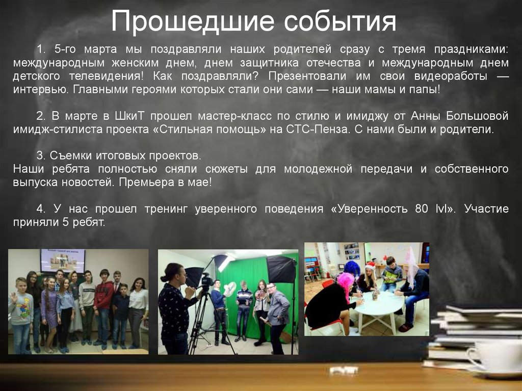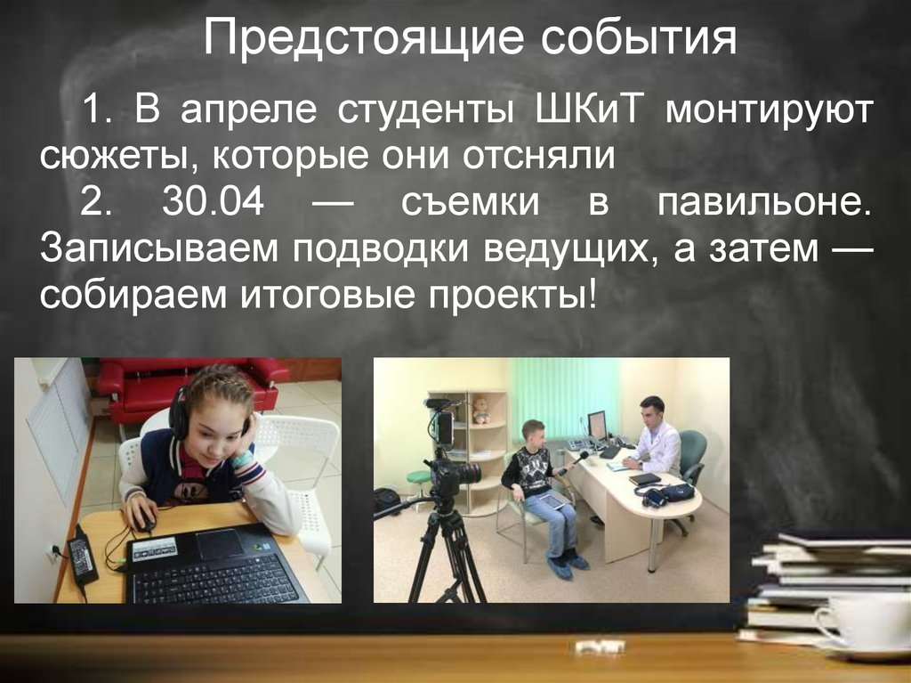 Предстоящие события1. В апреле студенты ШКиТ монтируют