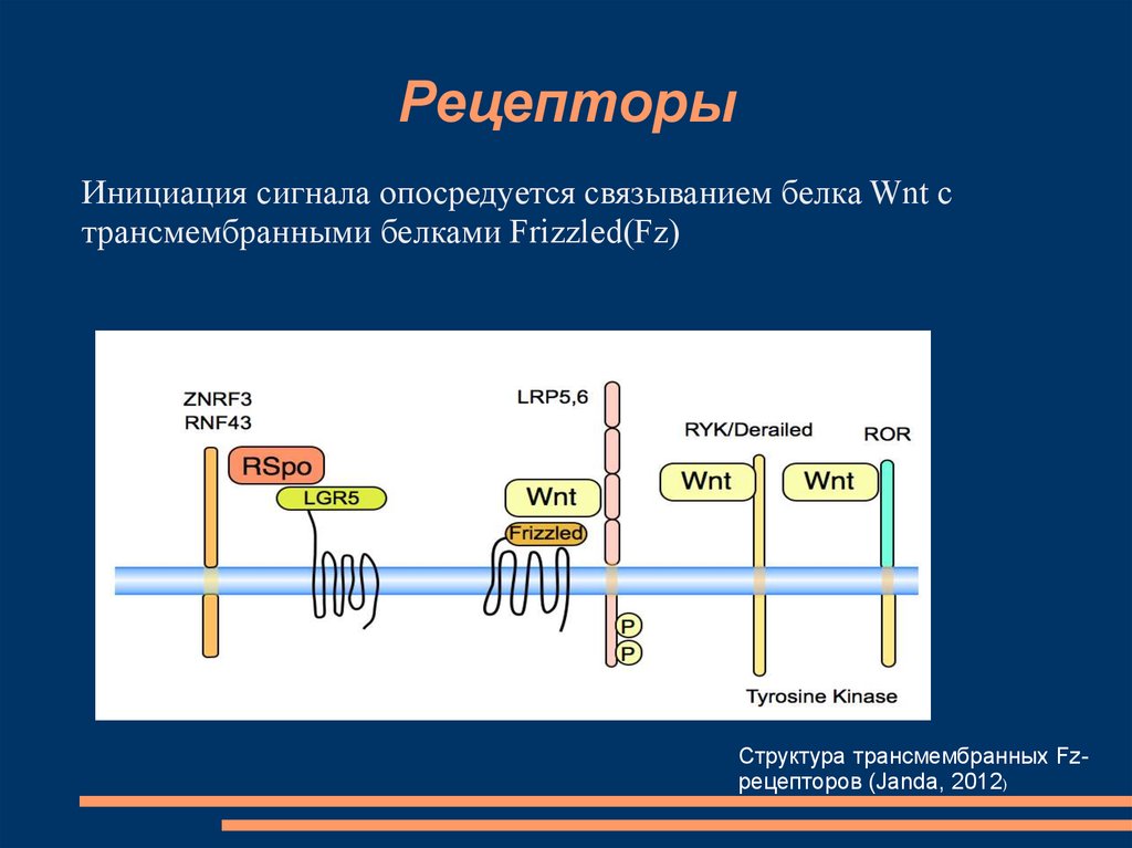 РецепторыИнициация сигнала опосредуется связыванием белка Wnt с