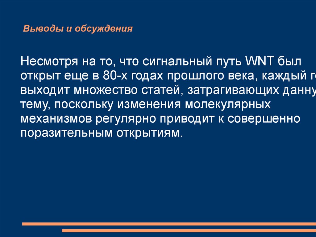 Выводы и обсужденияНесмотря на то, что сигнальный путь WNT был