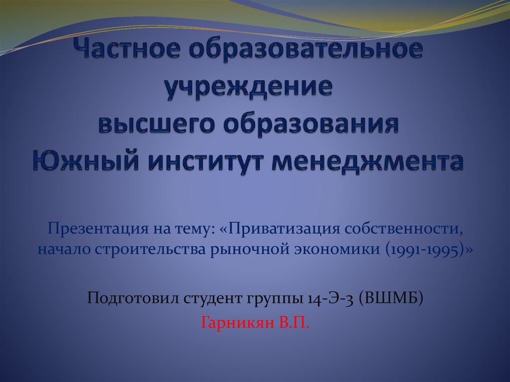 Презентация на тему: «Приватизация собственности,начало строительства рыночной экономики (1991-1995)»
