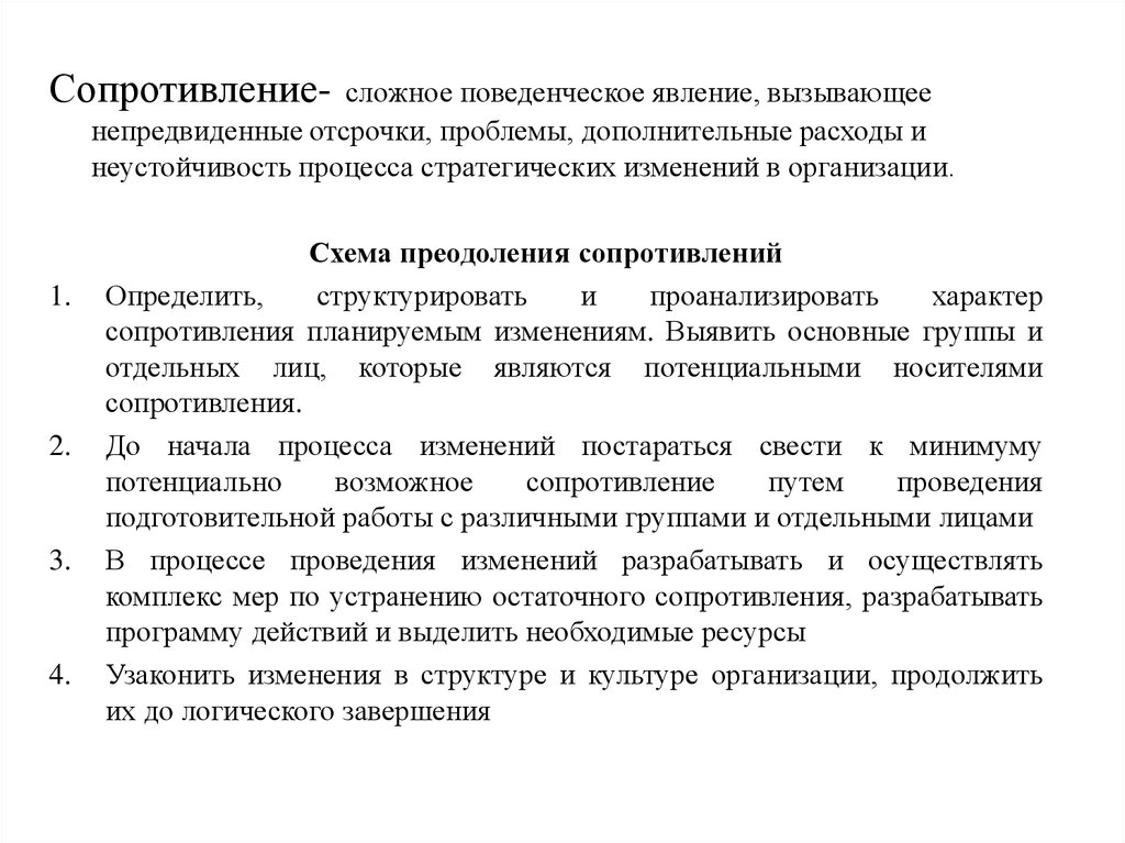 • Проявления сопротивления изменениям: