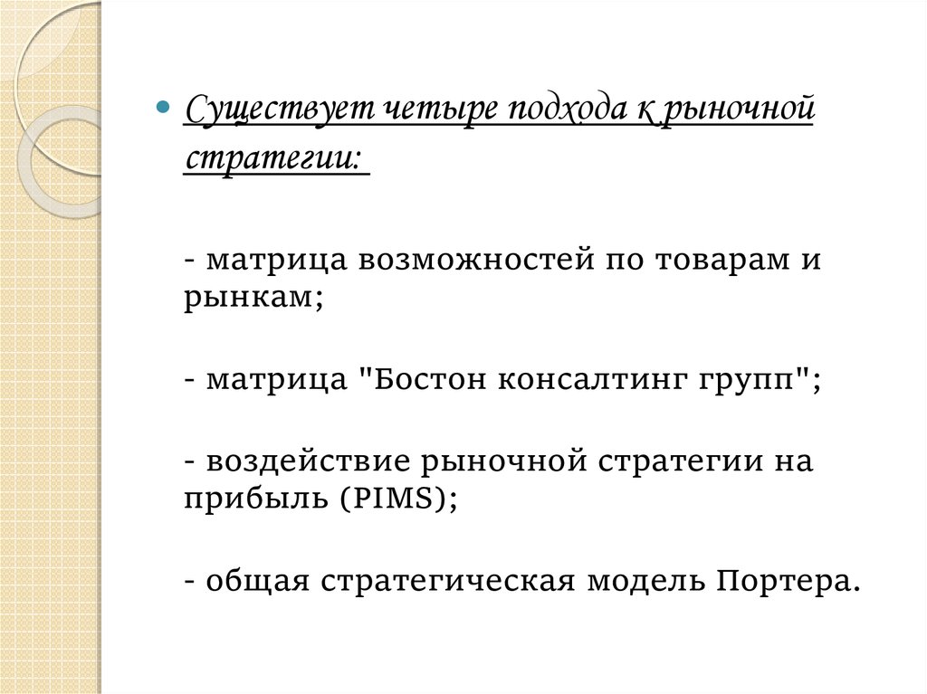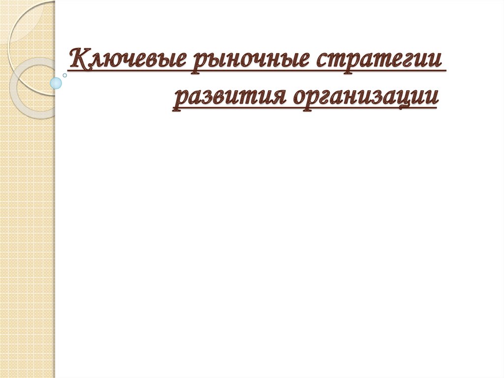 Рыночная стратегия предприятия формирование целей, достижение их ирешение задач предприятияпроизводителя по каждому отдельному