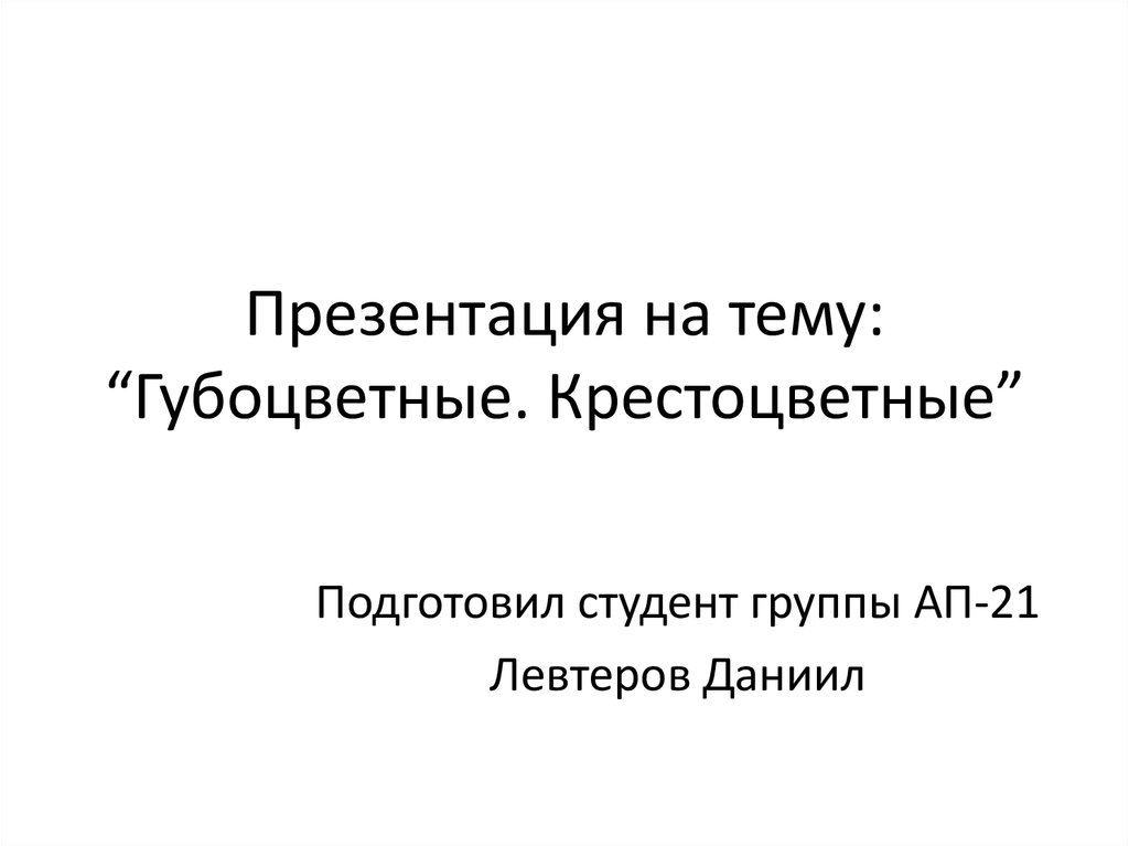 1. Презентация на тему: “Губоцветные. Крестоцветные”