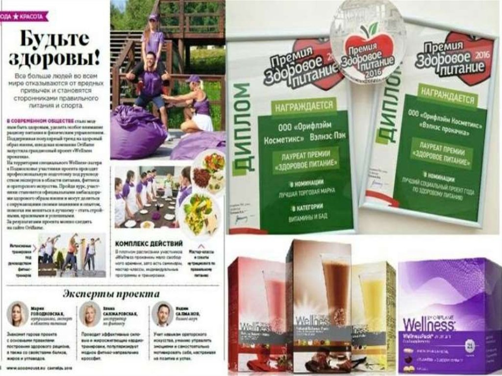6. Благодаря комплексу «Вэлнэс Пэк» компания Орифлэйм одержала победу в номинации «Лучшая компания-производитель» 2015 год 2016 г.- в номинации «