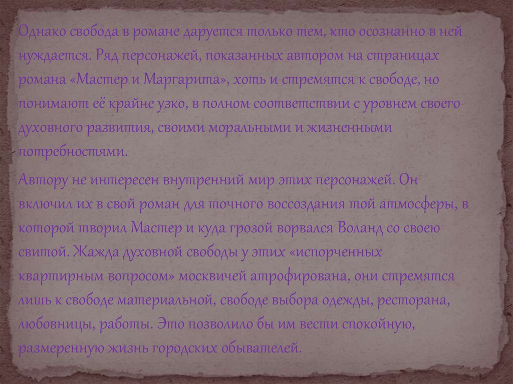 романа «Мастер и Маргарита», хоть и стремятся к свободе, но