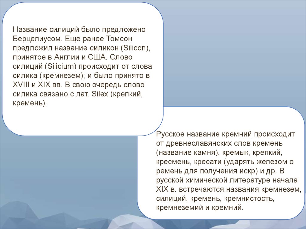 Название силиций было предложеноБерцелиусом. Еще ранее Томсон