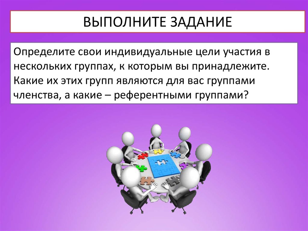 ВЫПОЛНИТЕ ЗАДАНИЕОпределите свои индивидуальные цели участия в