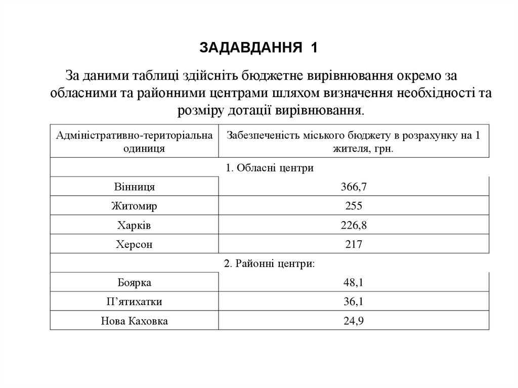ЗАДАВДАННЯ 1За даними таблиці здійсніть бюджетне вирівнювання окремо за
