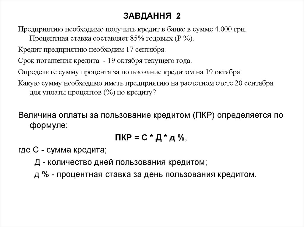 ЗАВДАННЯ 2Предприятию необходимо получить кредит в банке в сумме 4.000 грн.