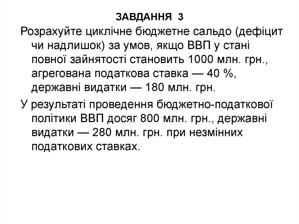 ЗАВДАННЯ 3Розрахуйте циклічне бюджетне сальдо (дефіцит