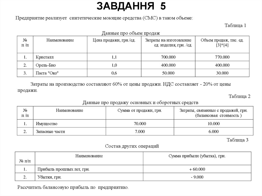 ЗАВДАННЯ 5Предприятие реализует синтетические моющие средства (СМС) в таком объеме: