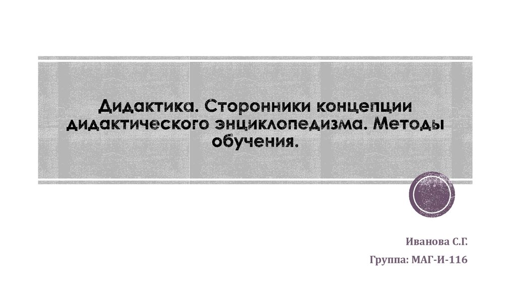 Дидактика. Сторонники концепции дидактического энциклопедизма. Методы обучения
