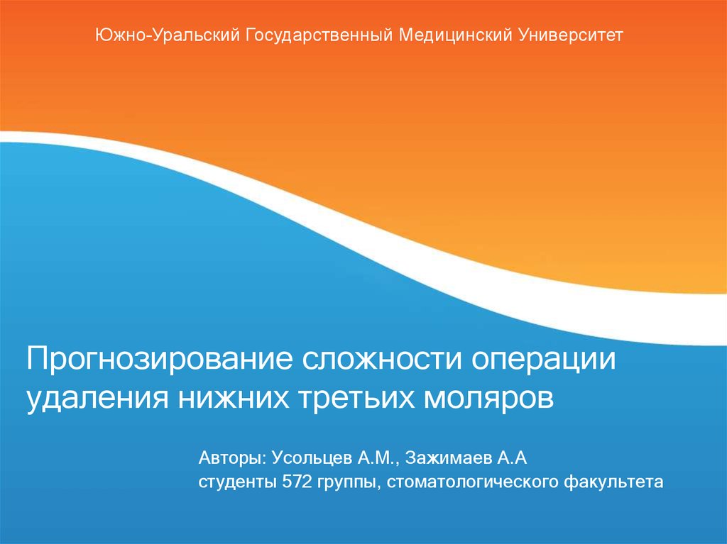 Южно-Уральский Государственный Медицинский УниверситетПрогнозирование сложности операции