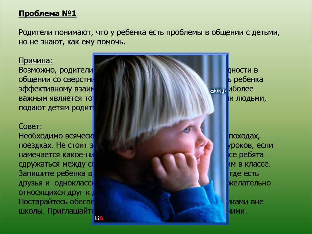 Проблема №1Родители понимают, что у ребенка есть проблемы в общении с детьми,