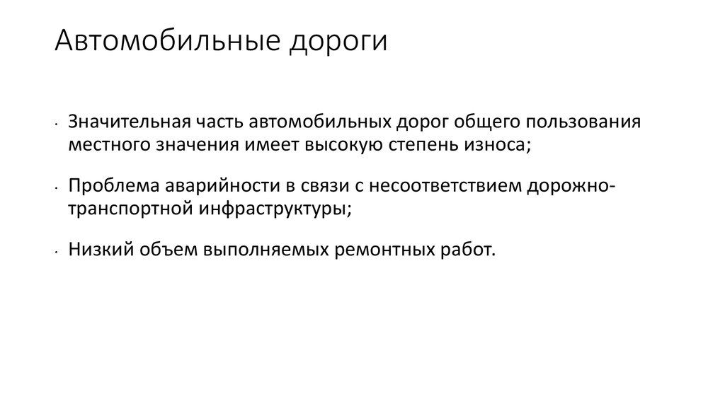 Автомобильные дорогиЗначительная часть автомобильных дорог общего пользования