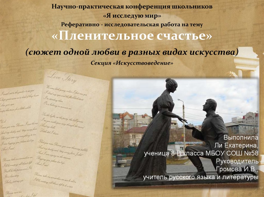 Исследование пересечений реальной истории романтических отношений француженки Полины Гебль и поручика Ивана Анненкова
