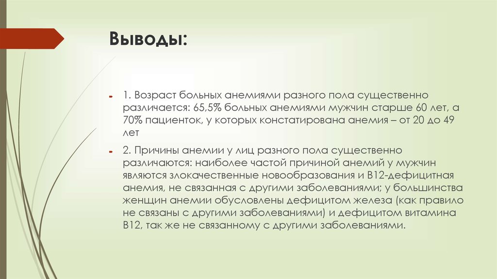 различается: 65,5% больных анемиями мужчин старше 60 лет, а