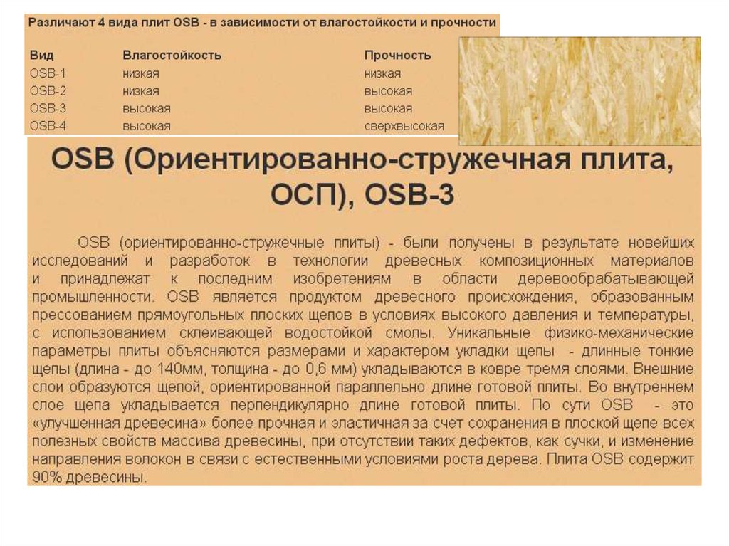 нормативных данных по материалу OSB.
