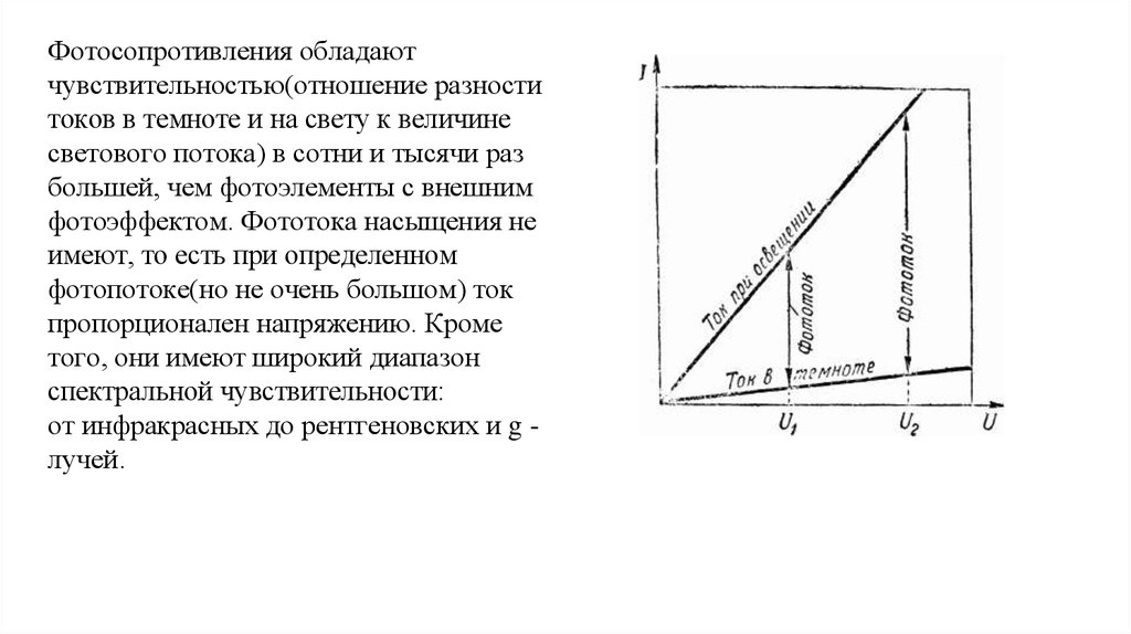 Фотосопротивления обладаютчувствительностью(отношение разности