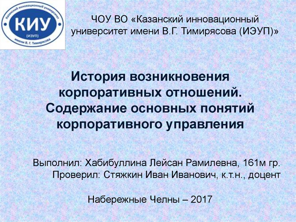 ЧОУ ВО «Казанский инновационныйуниверситет имени В.Г. Тимирясова (ИЭУП)»