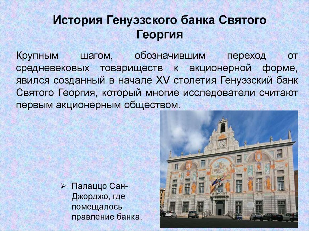 История Генуэзского банка СвятогоГеоргия
