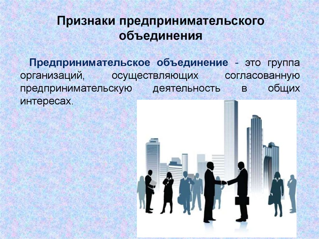 Признаки предпринимательскогообъединения