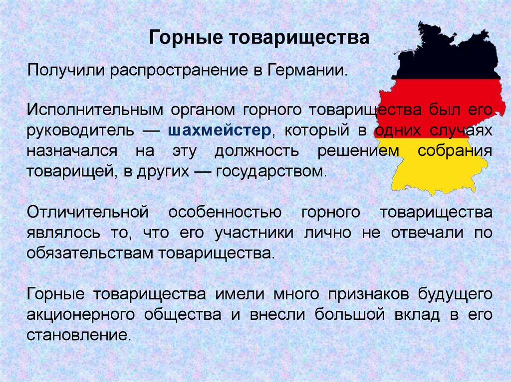 Горные товариществаПолучили распространение в Германии.
