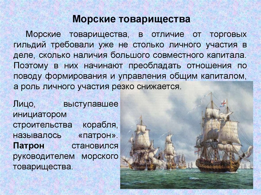 Морские товариществаМорские товарищества, в отличие от торговых