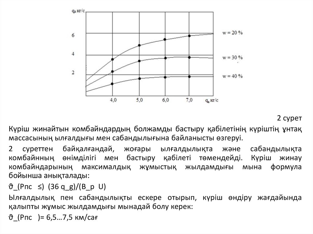 Күріш жинайтын комбайндардың бастыру қабілетін анықтаудың негізгі формуласы былайкөрсетіледі:
