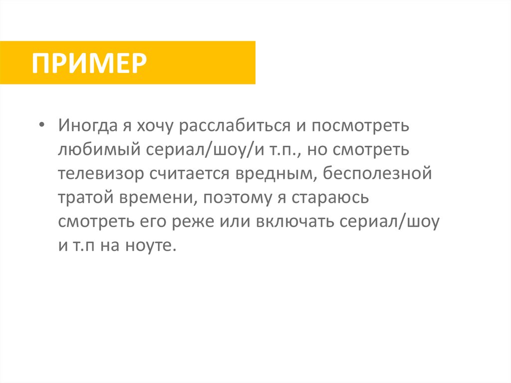 ПРИМЕР• Иногда я хочу расслабиться и посмотреть