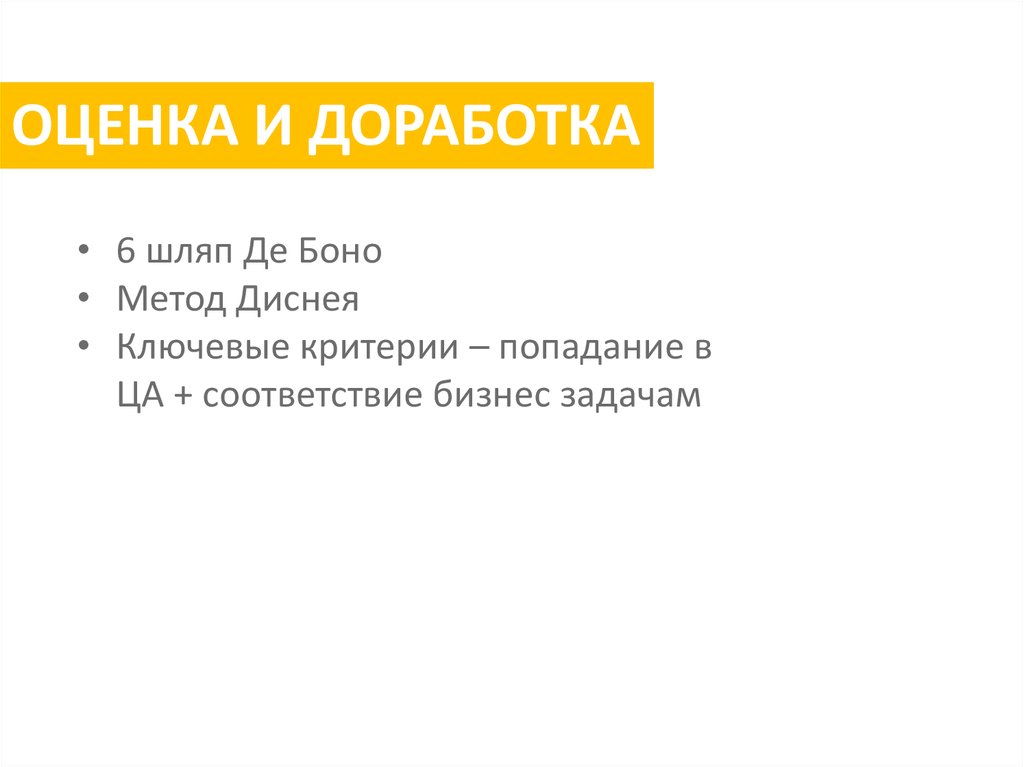 ОЦЕНКА И ДОРАБОТКА• 6 шляп Де Боно