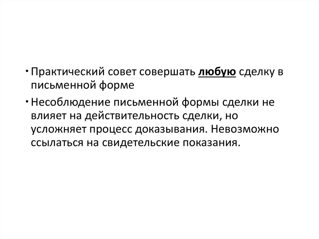 Практический совет совершать любую сделку вписьменной форме