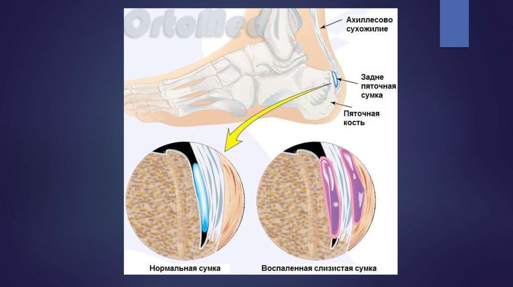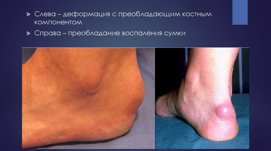 Нарост давит на ахиллово сухожилие и на сумку (ретрокальканеальная сумка), в