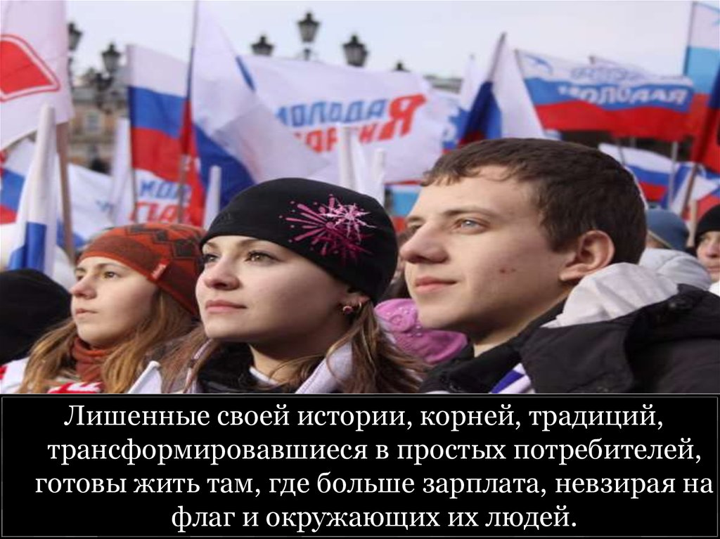 Лишенные своей истории, корней, традиций,трансформировавшиеся в простых потребителей,