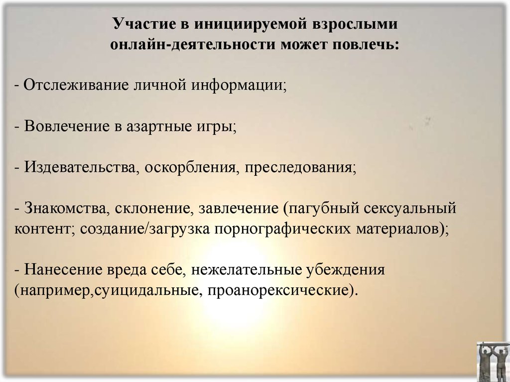 Участие в инициируемой взрослымионлайн-деятельности может повлечь: